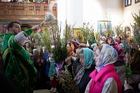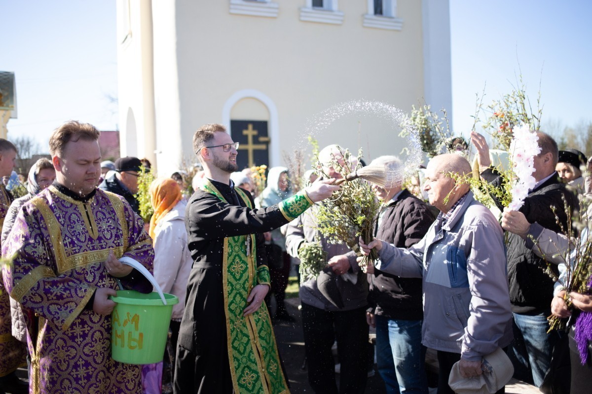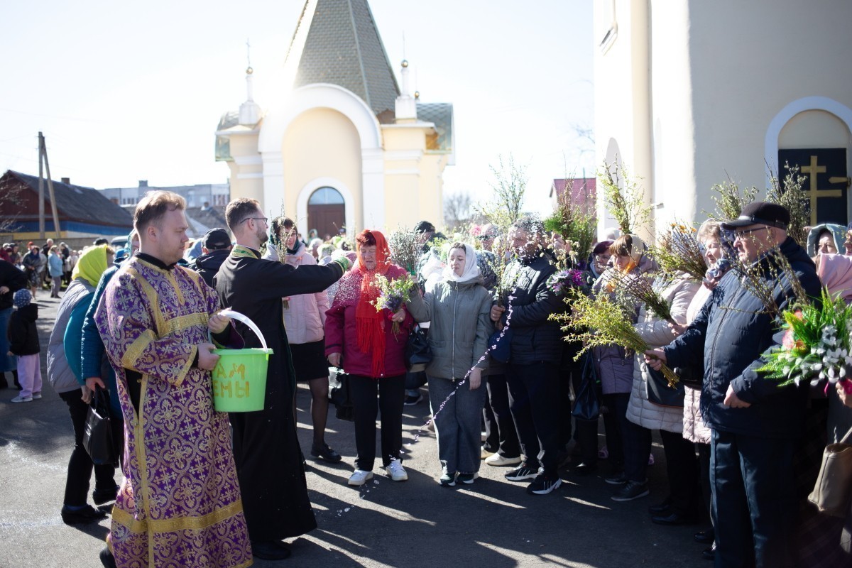 По отпусте Литургии состоялось славление празднику Входа Господня в Иерусалим, затем Владислав прочитал молитву на освящение ваий и окропил ветви вербы святой водой.
