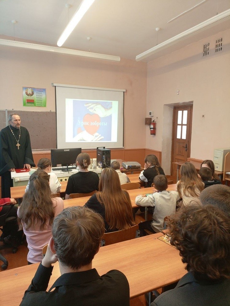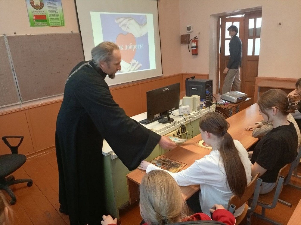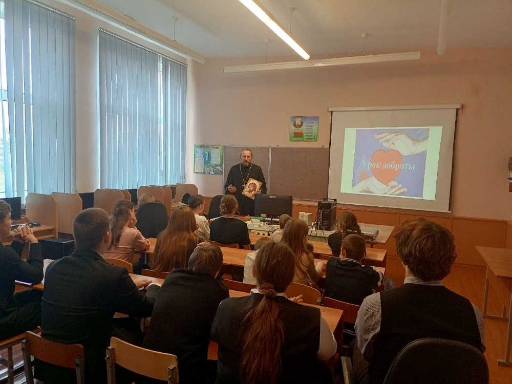Настоятель прихода храма Нерукотворного Образа Господня в аг. Красная Слобода Октябрьского района протоиерей Валерий Струк провел беседу с учащимися 5–11 классов.