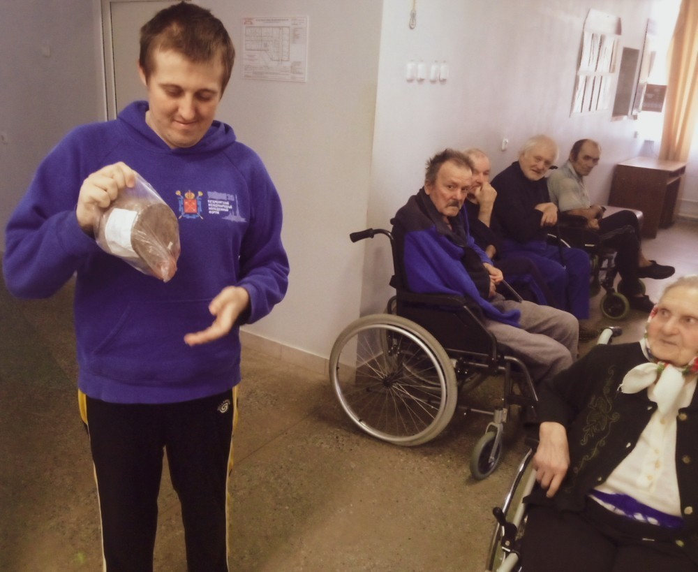 Священнослужитель поздравил проживающих и персонал с праздником Воскресения Христова, обратился к собравшимся с пастырским словом, пожелал крепости духа, надежды и утешения, которое приносит радость Пасхи. В знак внимания и участия гости передали всем пасхальные угощения.