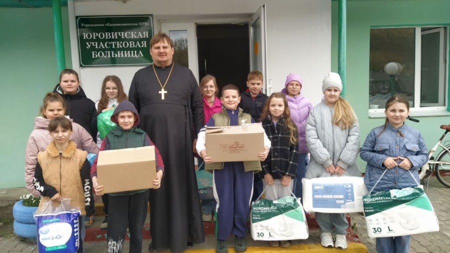 17 апреля 2026 года, благочинный Калинковичского округа, настоятель храма святых благоверных Петра и Февронии Муромских в г. Калинковичи иерей Сергий Карпович совместно с учащимися гимназии посетили отделение круглосуточного пребывания для людей пожилого возраста в аг. Юровичи.
