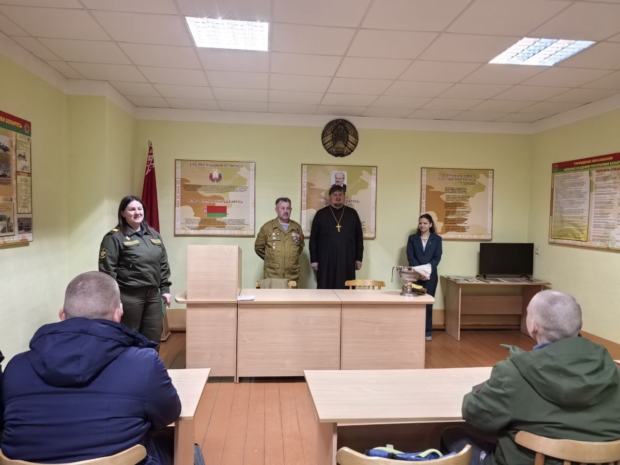 Напутственные слова и добрые пожелания ребятам сказали начальник группы призыва райвоенкомата Ольга Балацун, воин-интернационалист Александр Саливанчук, молодежный лидер района Валентина Сымботяну-Шевченко и благочинный Калинковичского округа, настоятель храма святых благоверных Петра и Февронии Муромских в г. Калинковичи иерей Сергий Карпович.